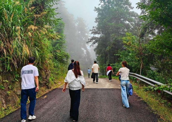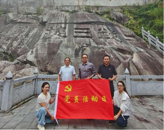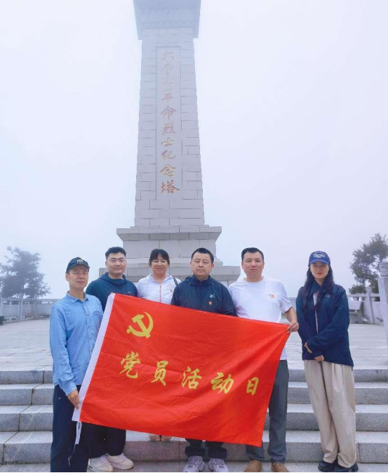 下午,大家前往大云山国家森林公园抗战遗址。山间薄雾缭绕,秋意正浓,凉爽的空气沁人心脾。党员们瞻仰烈士纪念塔,向革命先烈默哀致敬。随后,大家沿着蜿蜒的山路徒步前往三捷碑,在行走中感悟革命先辈不畏艰险、奋勇前行的精神。