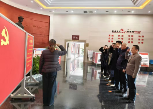在活动的第一站——何长工纪念馆,全体党员干部重温入党誓词,面对鲜红的党旗庄严宣誓,坚定了为共产主义事业奋斗终身的坚定决心。通过回顾何长工同志的革命生涯,感受革命先辈对党忠诚、勇于担当、无私奉献的崇高精神,激励党员干部传承红色基因,担当时代使命,走好新时代的长征路。