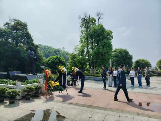 活动现场庄严肃穆,全体党员怀着无比崇敬的心情,整齐列队向革命英雄敬献花篮。党员代表缓步上前,仔细整理花篮缎带,全体人员肃立默哀,深切缅怀为国家富强、民族解放、人民幸福英勇献身的革命先烈,表达对英雄先辈的无限哀思与崇高敬意。