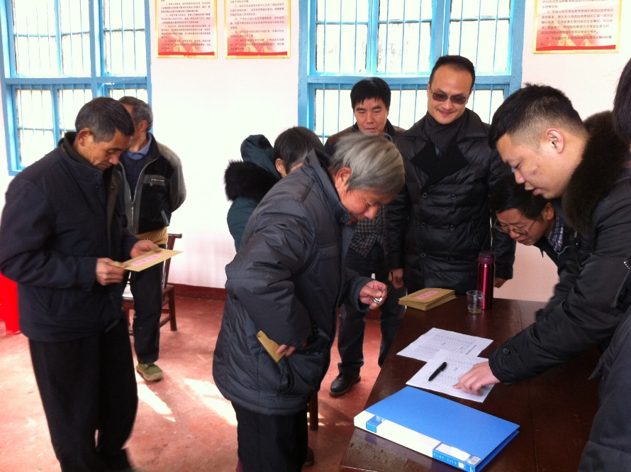 2016 年1月19日 ,我中心扶贫工作队员再次驱车300公里来到偏远的平江县黄金洞乡茶塅村,开展“进村入户、访困问需、访贫问计”新春慰问活动。市中心党总支书记冯俨和付宏总会计师带队,荀志敏、于江、刘一夫等同志参加了全天的活动。
